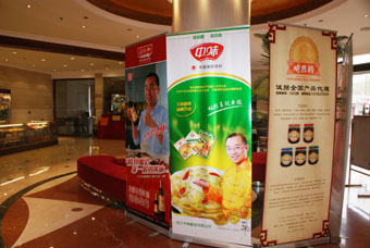 众多调味品企业也纷纷为商会组织的这次展示洽谈活动,各显神通。在活动的酒店现场,到处都是企业易拉宝、宣传单页的摆设,各式各样,精彩风尘。虽然企业的宣传各式各样,但是,由于该活动是在商会的规范组织下开展的,宣传的摆设自然是规矩整齐,充分显现商会主办的活动的正规性。在酒店大厅能看到主办方搭设的接待处。明显的标示给参加活动的商家都省了少精力。