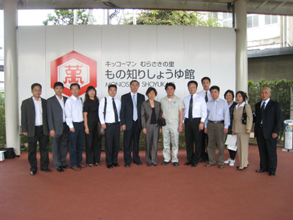 参观完景点,匆匆地赶到日本龟甲万公司野田工厂,时间不多,我们在工厂附近的一个拉面馆吃了顿工作餐。龟甲万公司的加山仁雄先生早早地在工厂门口等着我们。接待我们的是龟甲万酱油博物馆馆长大泽学先生。大泽学先生先向我们介绍了龟甲万的基本情况并播放了公司介绍短片之后,带领我们参观龟甲万酱油博物馆和厂房,从原料处理、原盘制曲、发酵地各个工序都做了详细的讲解。之后我们前往另外一个工厂,平成食品工业株式会社,参观龟甲万御用酱油生产车间,这里的酱油是用来供奉日本皇宫和政府部门的,完全采用传统工艺生产,发酵周期长,每年的产量大约在3000吨左右。厂房从外边看上去,更象一间具有日本传统文化特色的住宅。